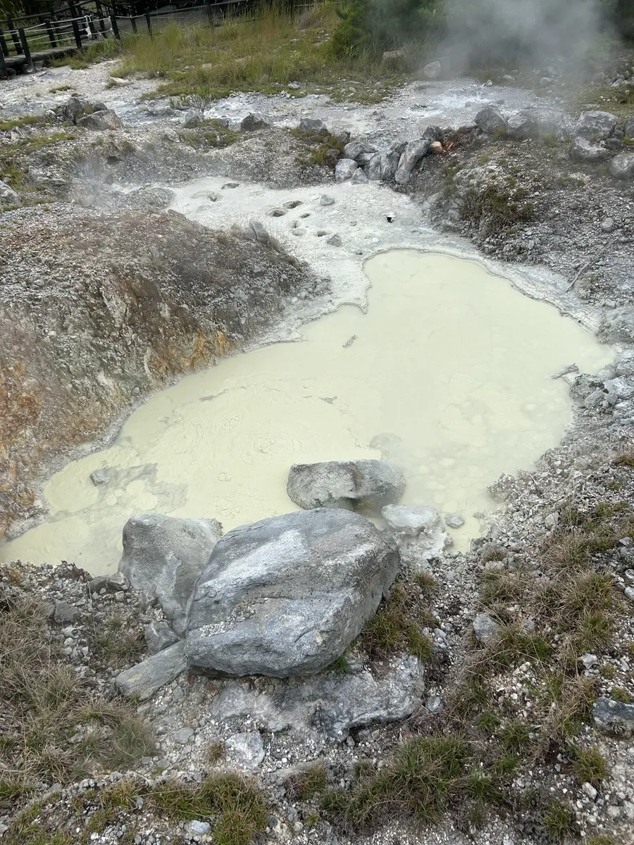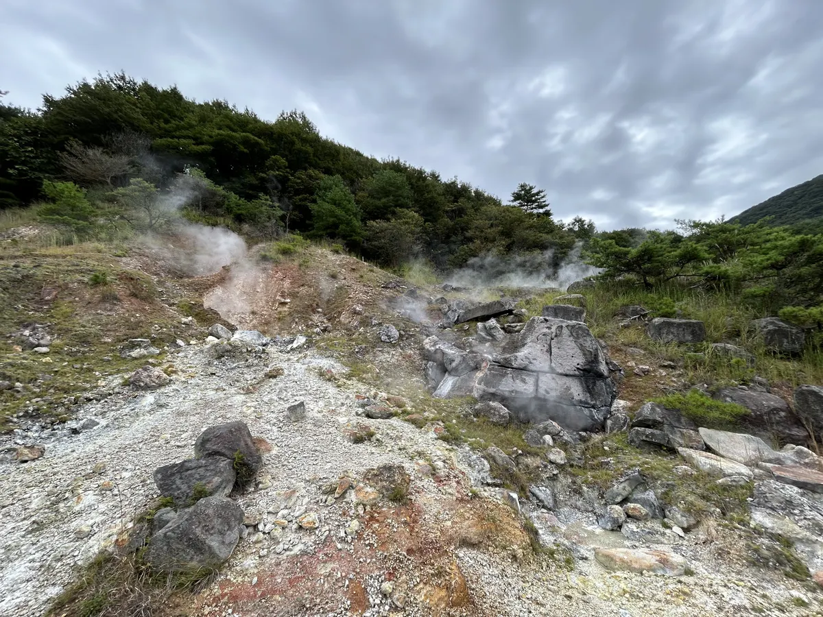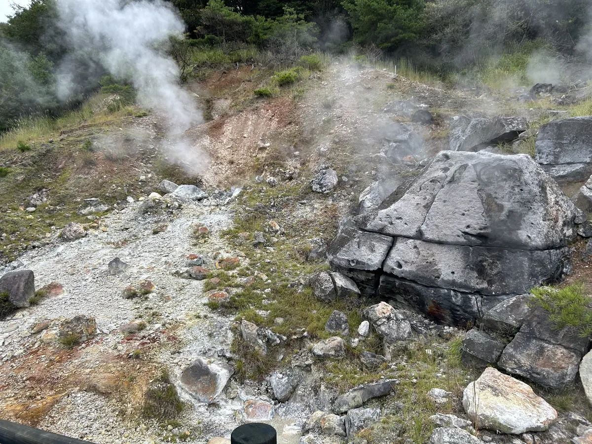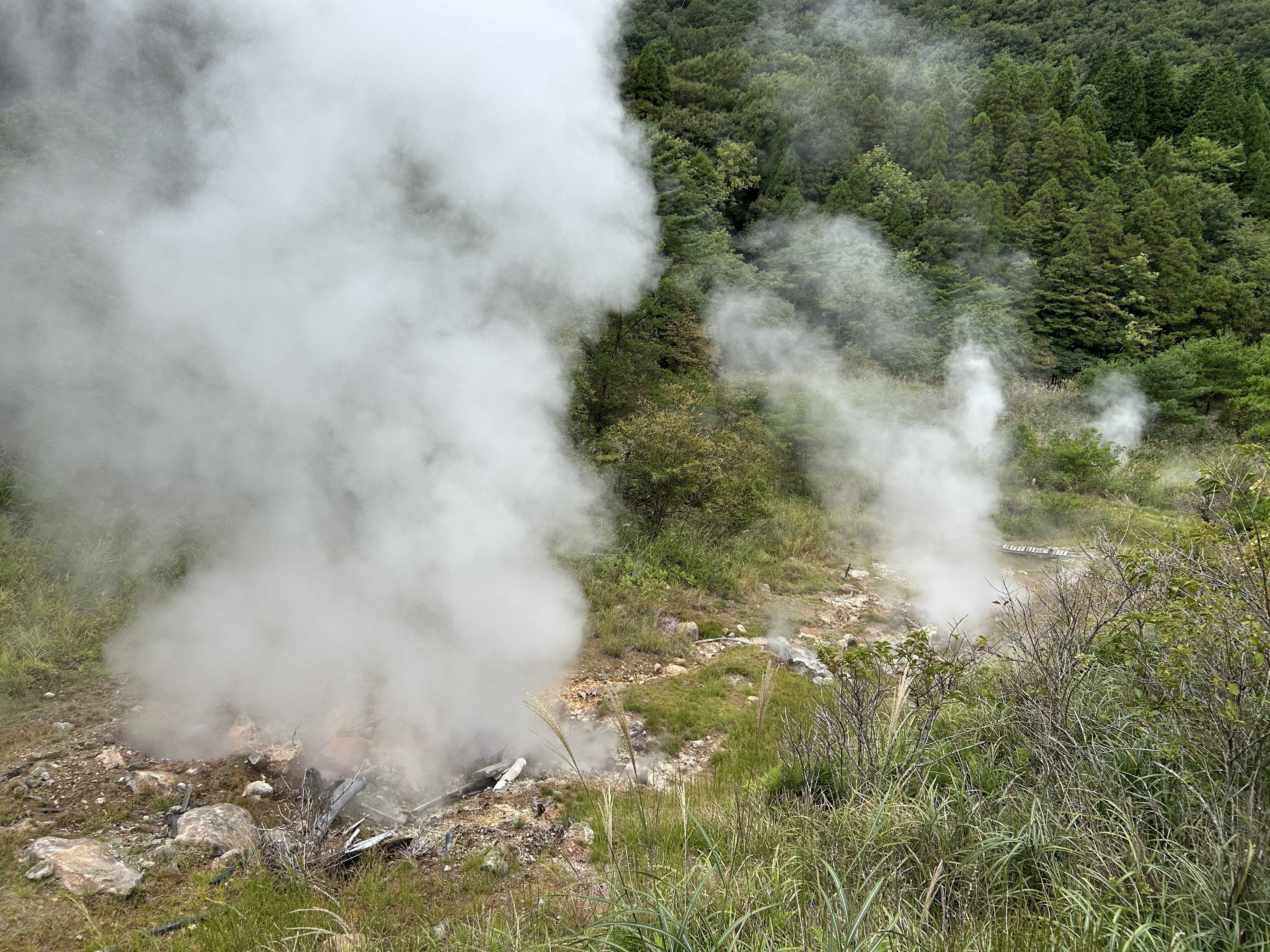 硫黄臭がすごく、火薬の臭いにも近いですね。地獄といえば別府のイメージですが、さすがは温泉県。あちこちこのような豊かな地熱資源がございます。