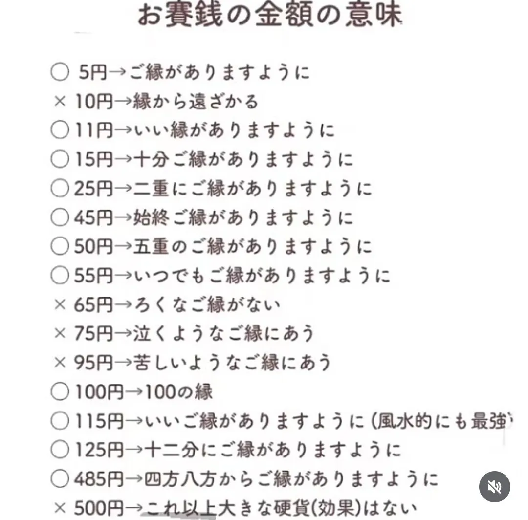 お賽銭の金額の意味をちゃんと知らなかったので、なるほど〜と思いました。これから意識して行きたいと思います。