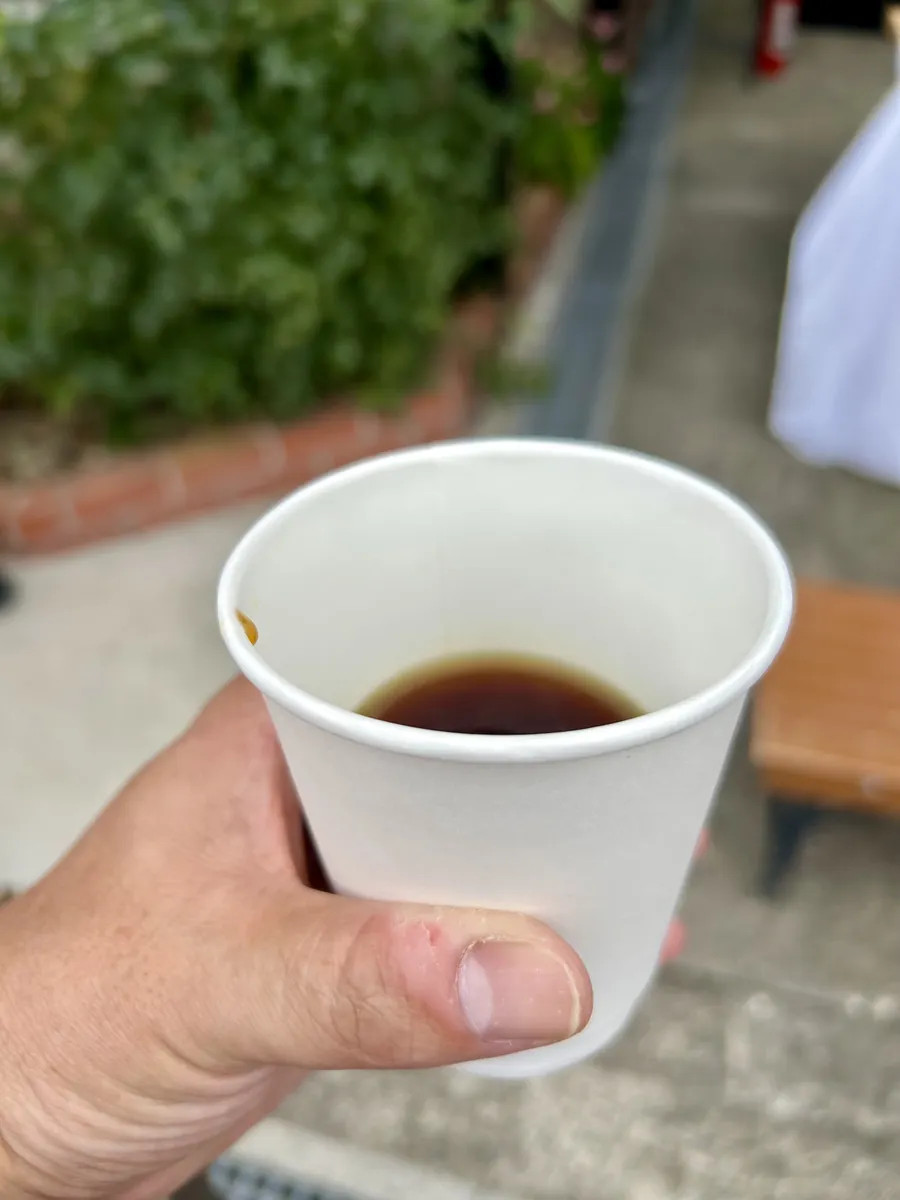今回のテーマは「水のジャパンコーヒーフェスティバル2025 in 木之本」。木之本といえば美味しい地下水が湧き出すところ。その地下水5種類を使ったコーヒーの飲みくらべで、29団体が出店し、それぞれその地下水に合った豆と焙煎具合と抽出方法で100ml程度の試飲ができます。