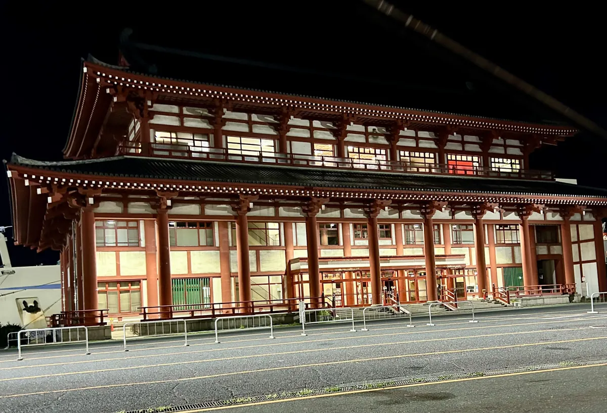 かなりのバタバタで、別府〜北九州・新門司港へ到着。フェリーターミナルはなんだか鴻臚館を意識しているのか、阪九フェリーさん。