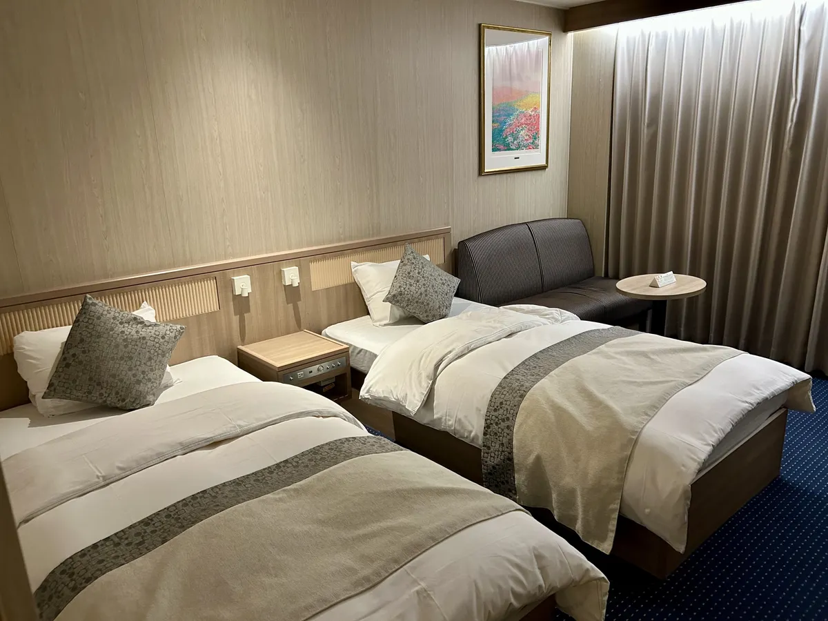 ホテルのような仕様で、なかなか雰囲気も良く、大満足。「ふねこ」がプリントされたアメニティも完備☺️