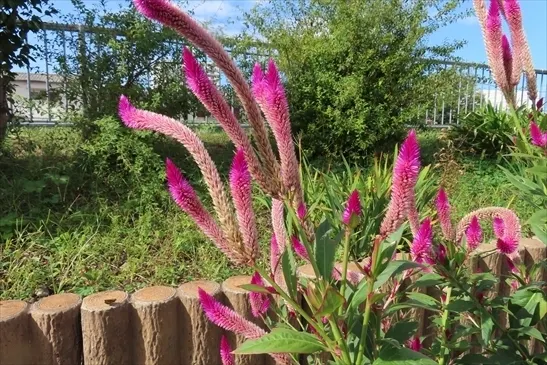 石津川土手に咲くノゲイトウ 変わった形の花だ!