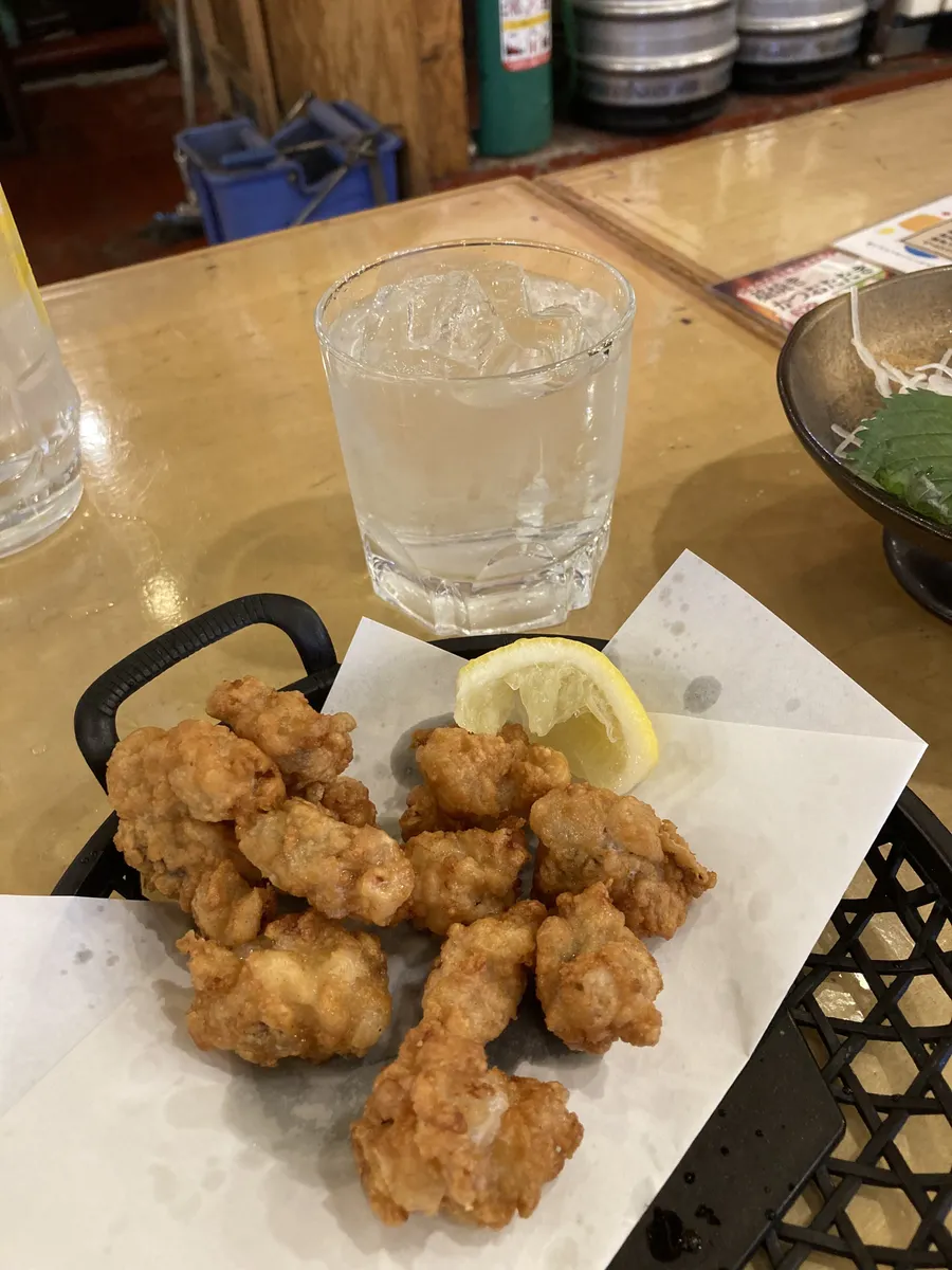 さらに焼酎とタコ唐揚げも追加します😋😋