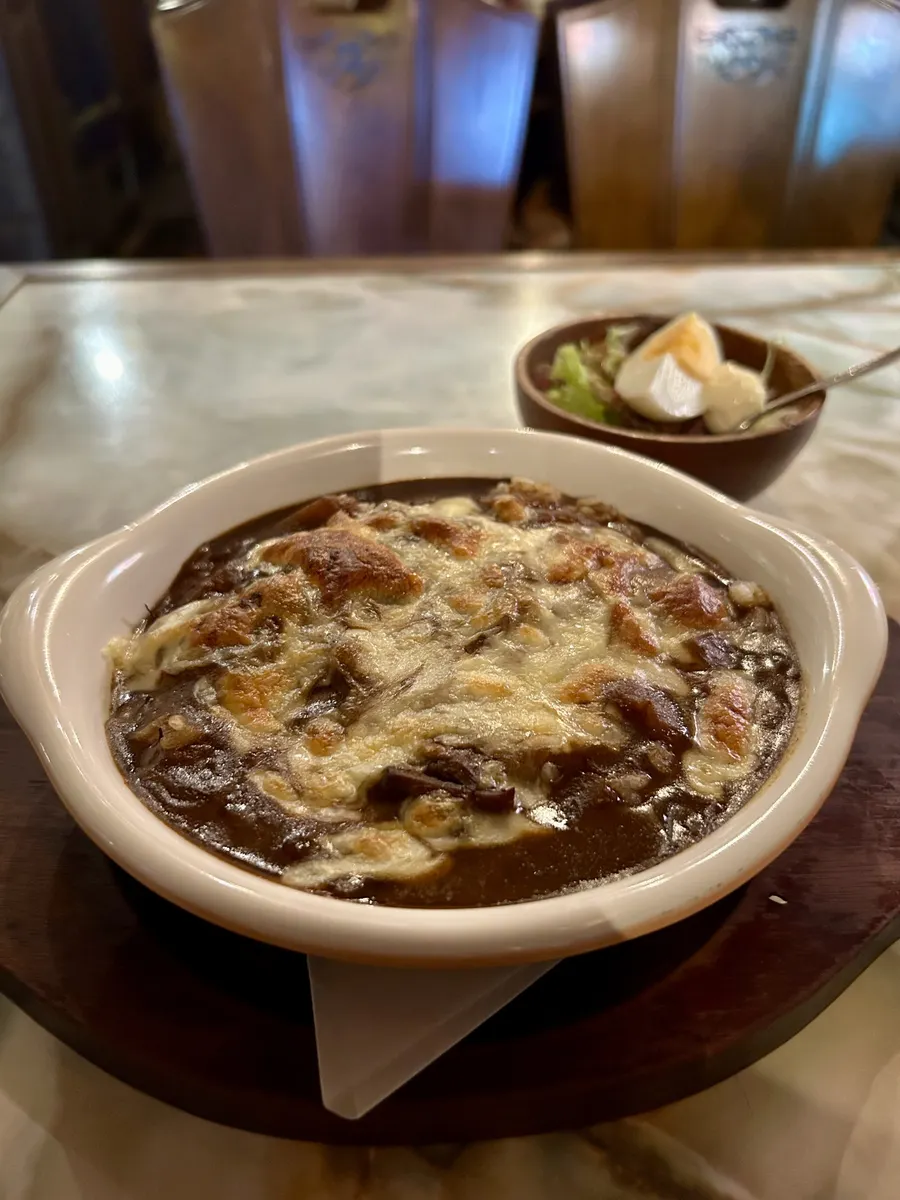 こちら、ジャワが関係しているかどうかわかりませんが😅、カレーがおすすめとのことで、いただきました。いわゆる喫茶店のカレーを少しスパイシーにして、チーズをかけて焼いたものですが、これがうまくて美味くて😋