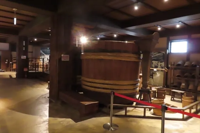 館内の展示 昔の大きな仕込み樽