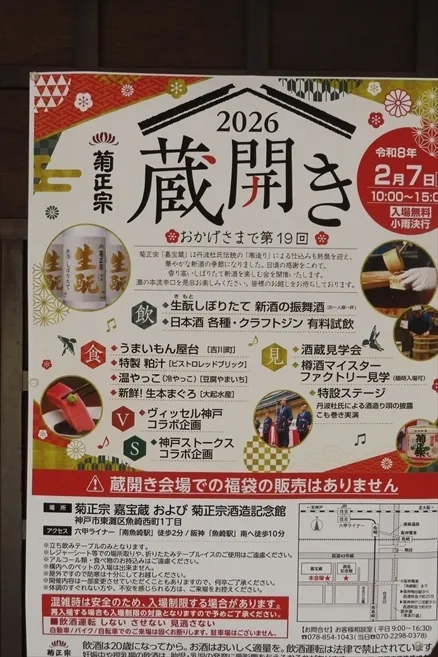 2月8日 菊正宗蔵開き 試飲もできるそうな ただ酒ほど怖いものなし