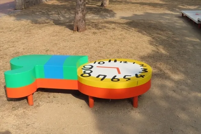 なぎさ公園のアート➀ 5時45分で針が止まった時計
