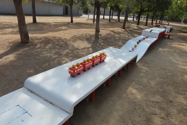 なぎさ公園のアート➁ 地震で倒壊した阪神高速を連想させるようなアート