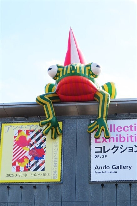 兵庫県立美術館屋上から顔を出す 巨大なカエル!