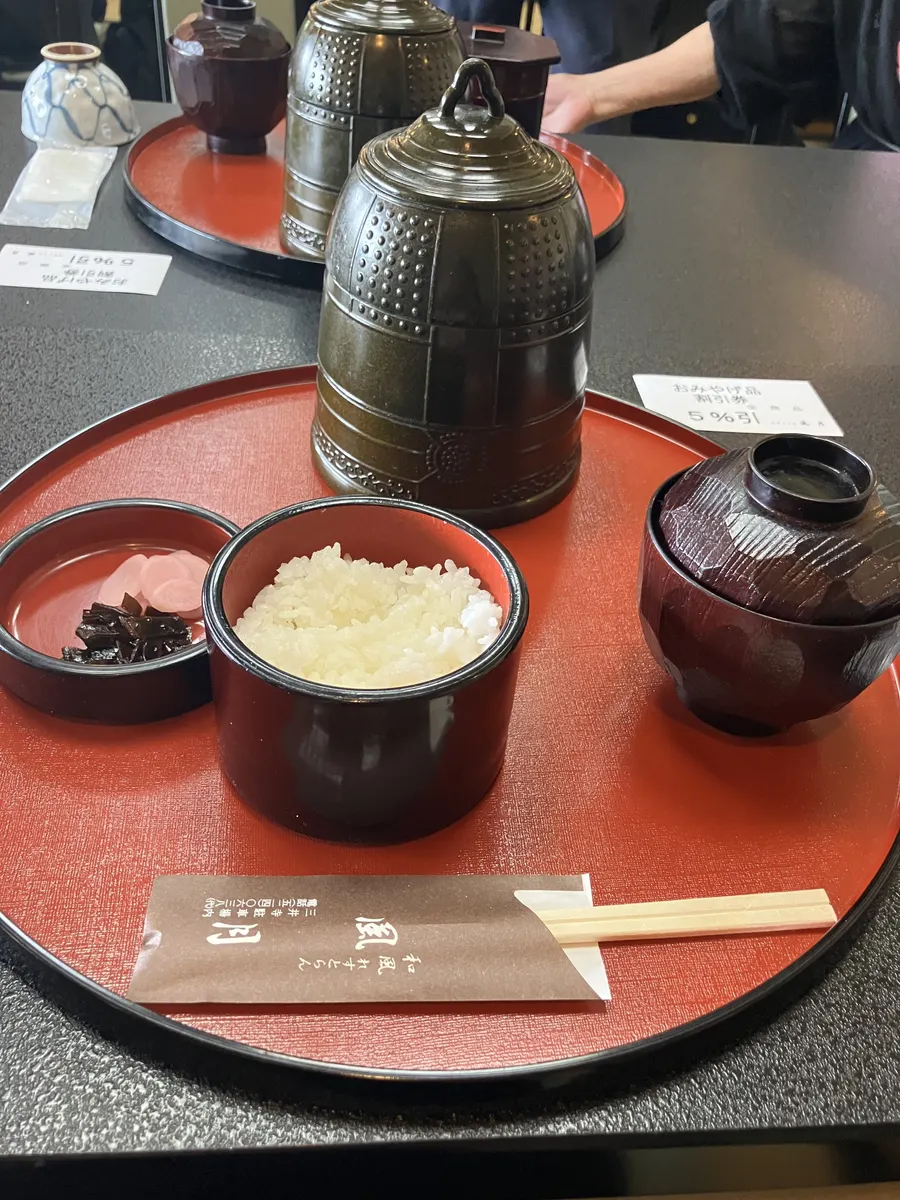 3段に分かれた釣鐘型器を広げ、美味しい味付けの料理を頂きました
