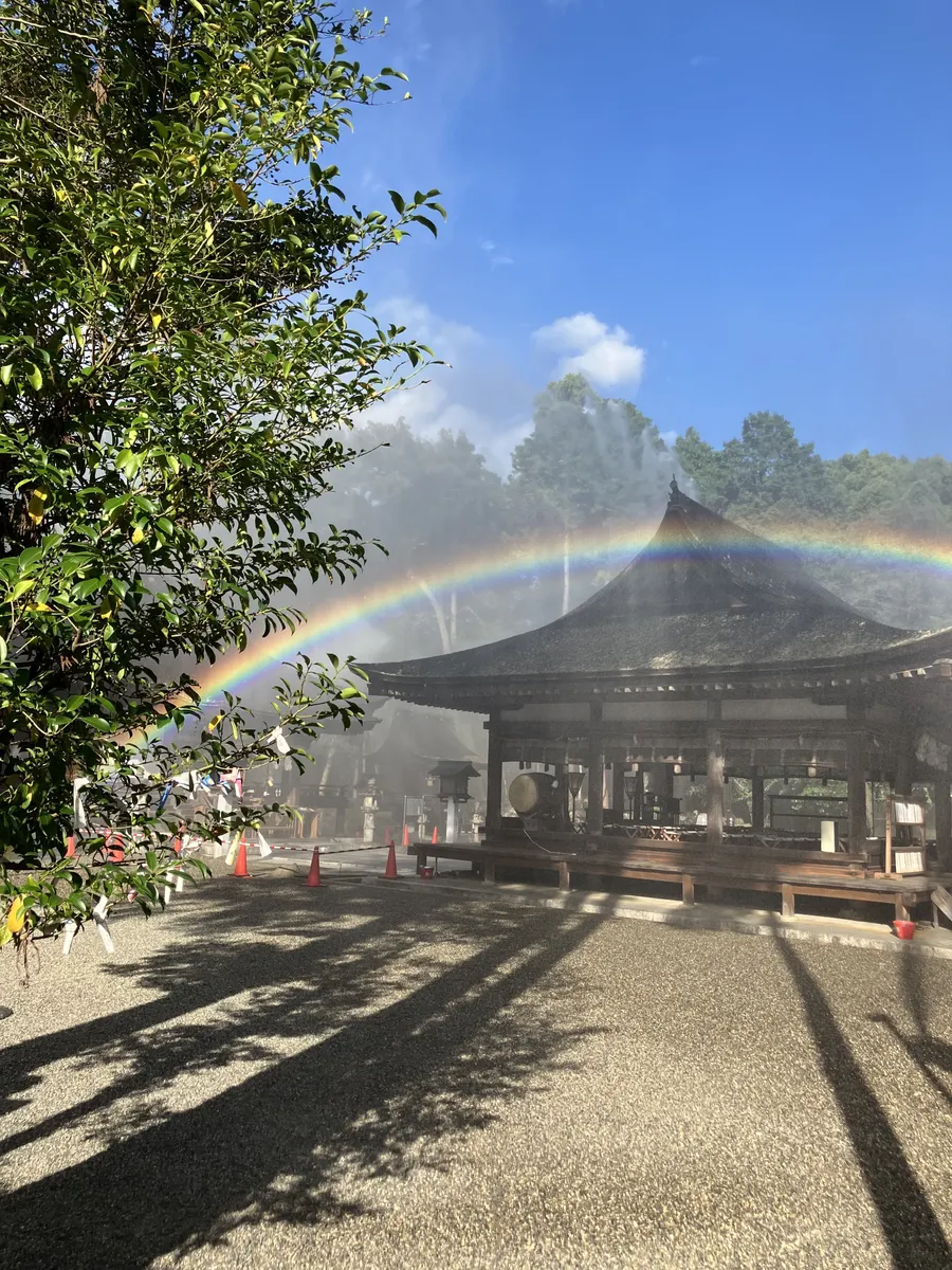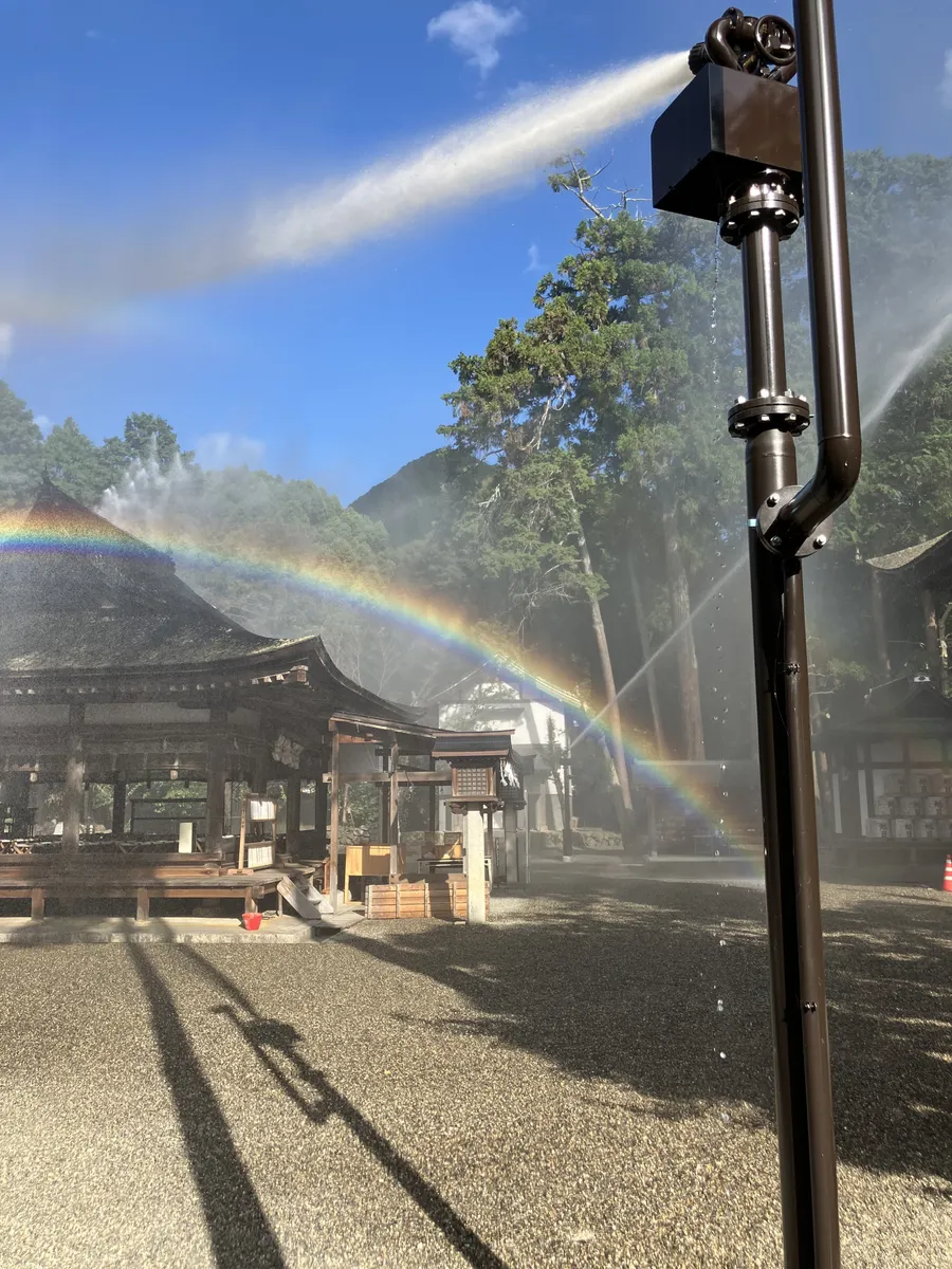 参拝後、消防設備の放水の実演をして下さったのですが、すぐに綺麗な🌈が現れて歓声の声が上がりました❗️