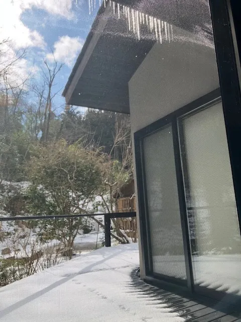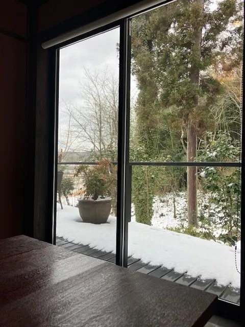 個室なので、ゆっくりと食事が出来ます。雪景色もまた情緒があり素敵です。