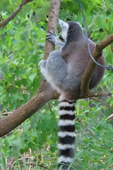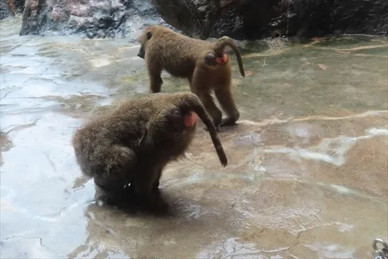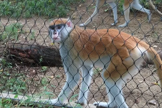主に小型のサルが展示されていて、ゴリラやチンパンジー、オラウータンなどの大型類人猿はいない。園に入って気づくのはケージ(檻)がなく、曲がりくねった狭い園路の両側には木々が生い茂り、あたかも南米のジャングルを歩いているような気分になる。シロテナガザルが展示されている島の周りにはネットはない。水を怖がるサルは島から出ない工夫がされている。その他にもほかの動物園では見かけない小型のサルが多く展示されていた。時間があればもっとゆっくり園内を歩き回れるのに残念。日本海側の長門市まで行かなくてはいけないのだ。