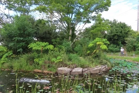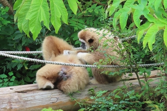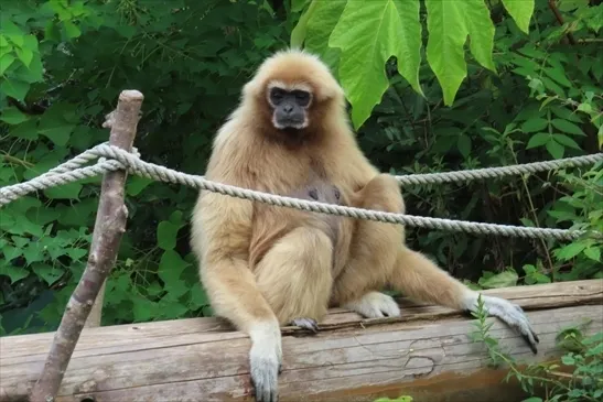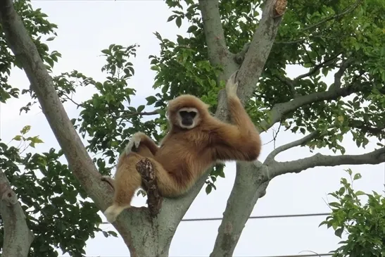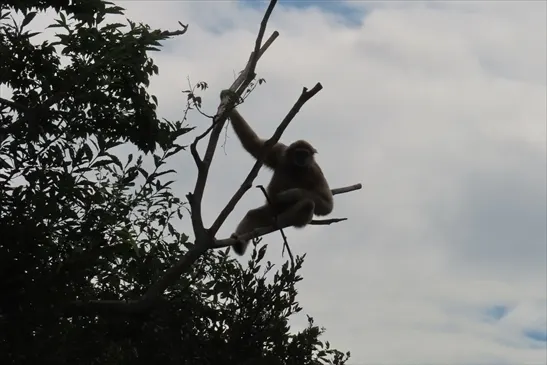 シロテナガザルは池に囲まれた島の中で生息環境展示がされている