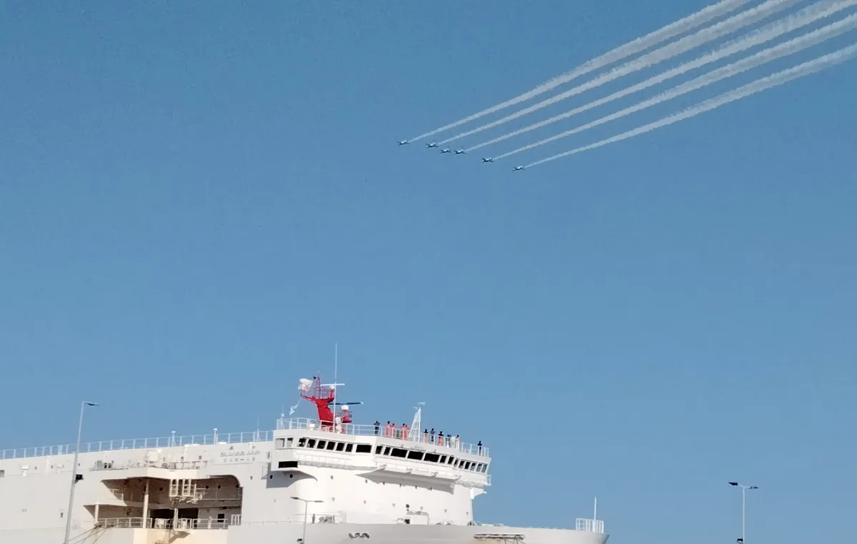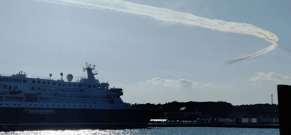 年に一回のイベントなので係留岸壁を調整、最上階デッキを開放(乗員スタッフがブルーインパルスを観ていました!)、鑑賞後の乗船時間調整等の考慮はいかがでしょう…? 無理かな~?