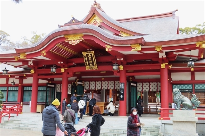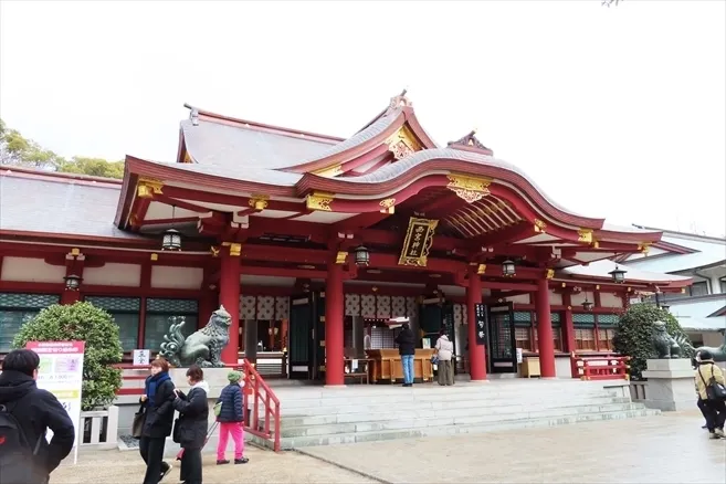 西宮神社 朱塗りの拝殿 えべっさんで賑わう