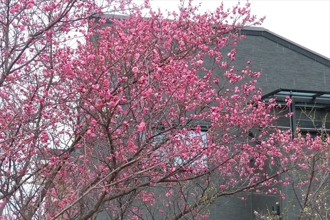 今シーズン初めて見るの梅 鳴尾八幡神社鳥居前の梅の花