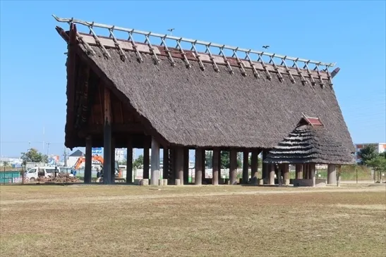 池上曽根史跡公園(和泉市)曽根神社境内の先 復元された弥生時代の大型掘立柱建物
