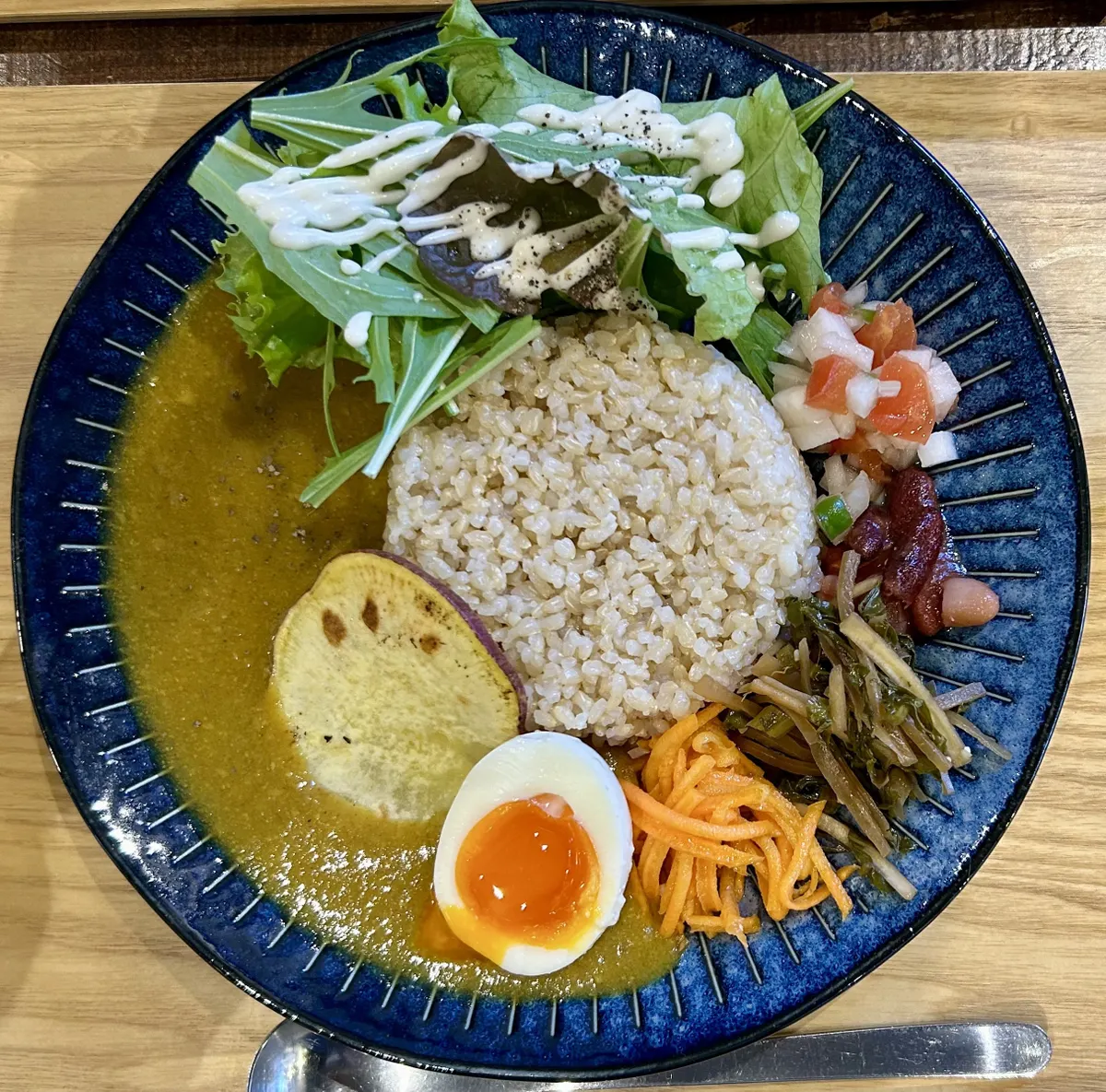 少し辛さが足らないので、ほんの少しだけスパイスを足しました。添えられたお野菜のお菜も全て美味しい👍