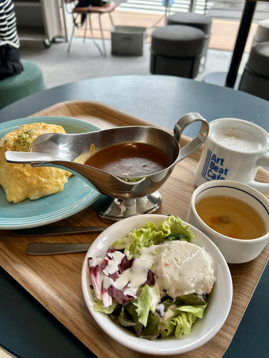 今回はこの中からアートビートカフェさんへ。関電本社ビルの堂島川を挟んで真向かい、朝日放送さんの敷地内にあるカフェです。なるほど!Art Beat CafeでABCか!!🤔