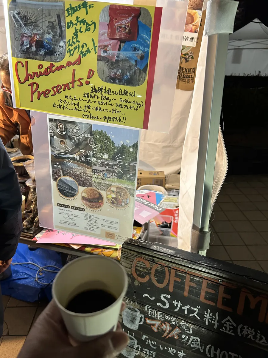 運命のチケットと称して、ガチャガチャでひいたのは京都の京北で豆の焙煎をされている「マサイの風」さん。ここで深煎りの一杯を。