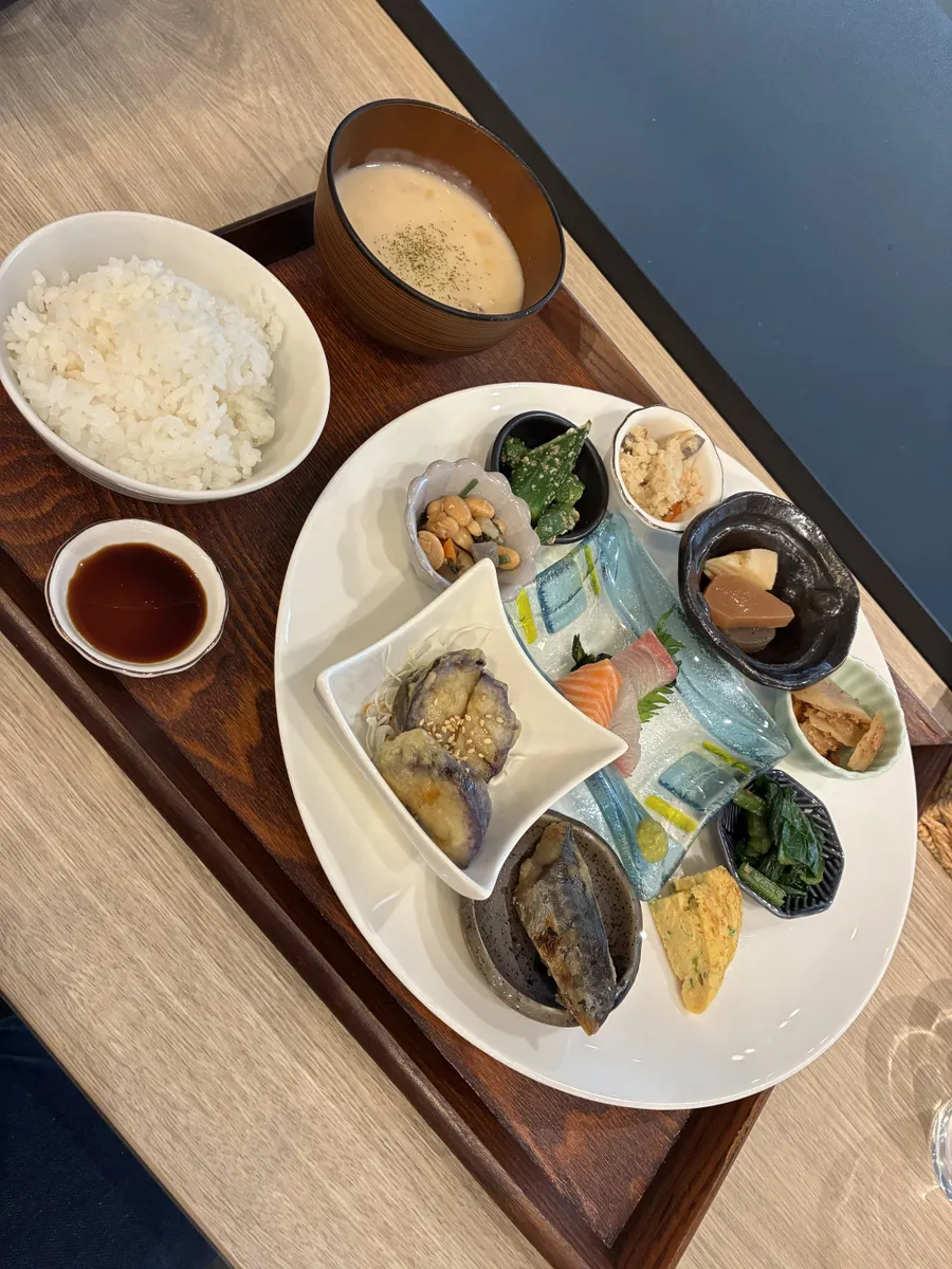 投稿を表示お刺身や煮物 焼き魚まで揃ってとてもヘルシーなランチですね。