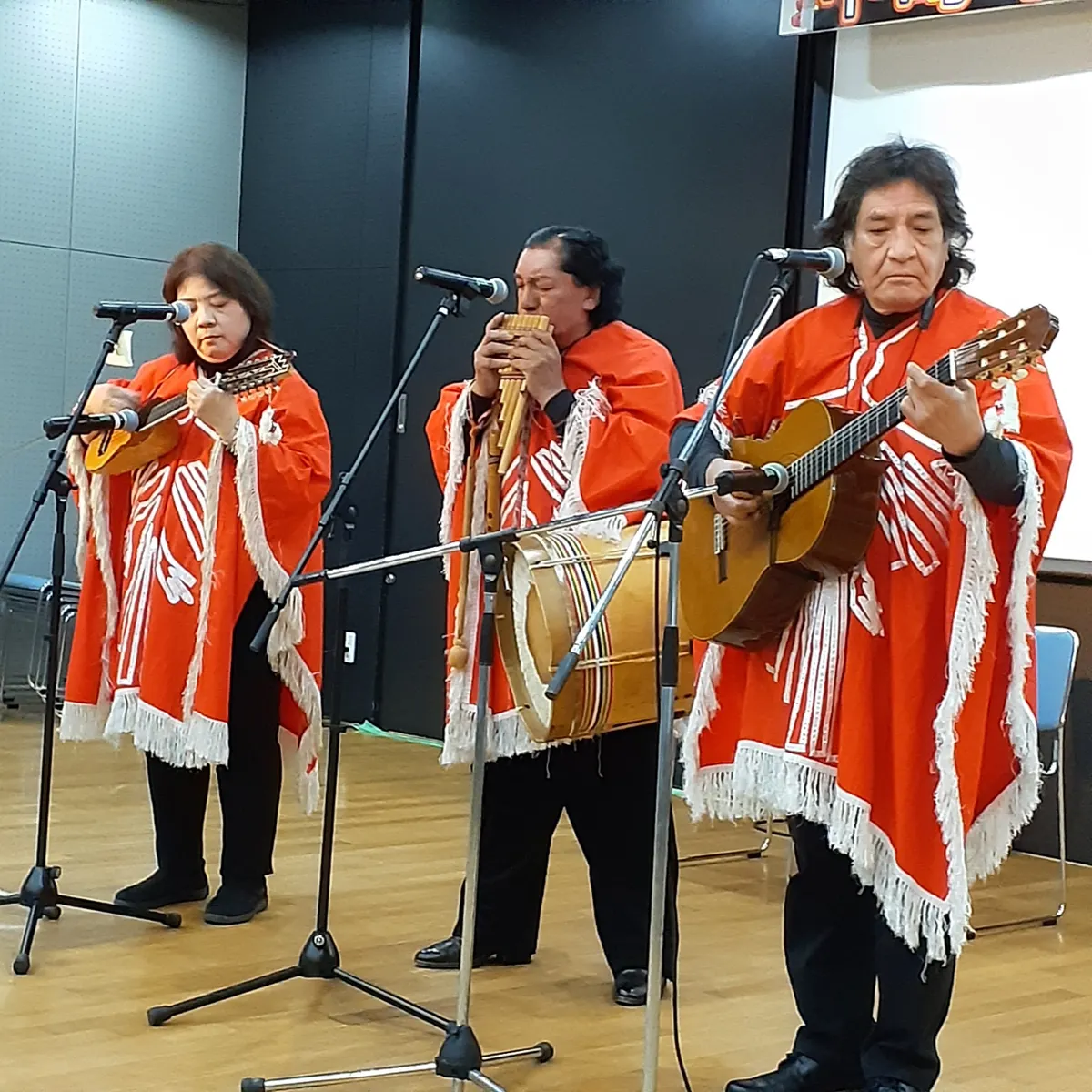 中津在住のペルーの方々がペルーの音楽を演奏して下さいました。コンドルは飛んで行くは、皆耳を澄まして静かに聞いていましたが、他の曲はスペイン語の掛け合いがあり、ノリノリのリズムで小さな子供達が踊りだし楽しいひとときでした。