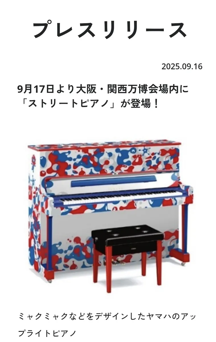 お店の目の前の休憩所でミャクミャクピアノ🎹(ストリートピアノ)があり、まさかのうちの次男も参加