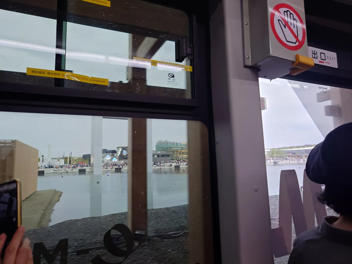 万博通の方から、西ゲート行くことあれば、西ゲートが始発の関電のEVバスに乗ると、歩いては通れない大屋根リングの下を通れるよと教えてもらったのでせっかくなので乗ってみました