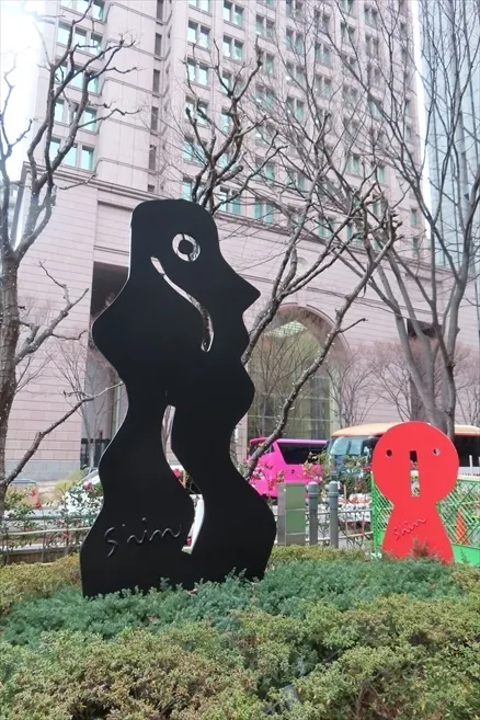 ザ・リッツ・カールトン大阪前の歩道に並ぶオブジェ