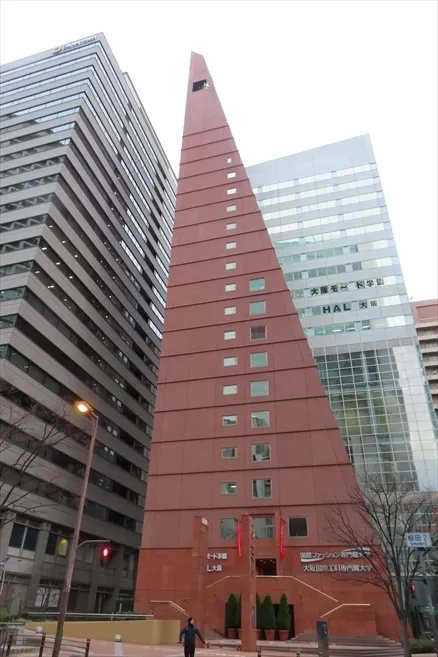 三角形のビルは大阪モード学園 さすがファッション関係、ぶっとんでます!