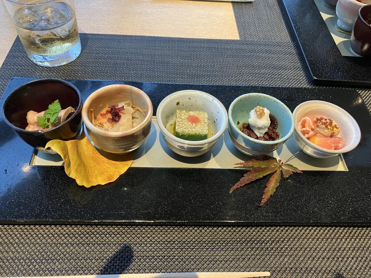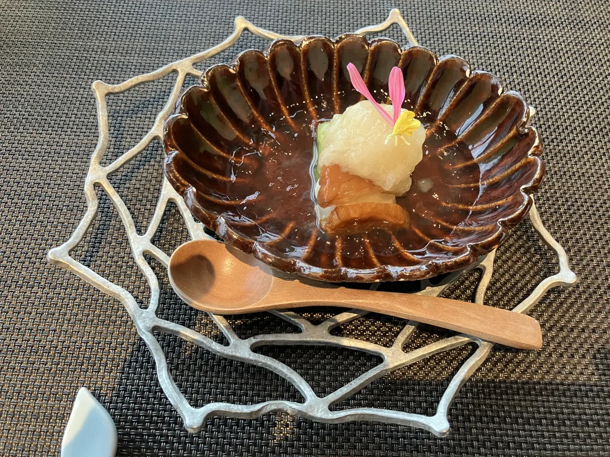 先附 帆立の酒煎りと煮帆立みぞれ掛け