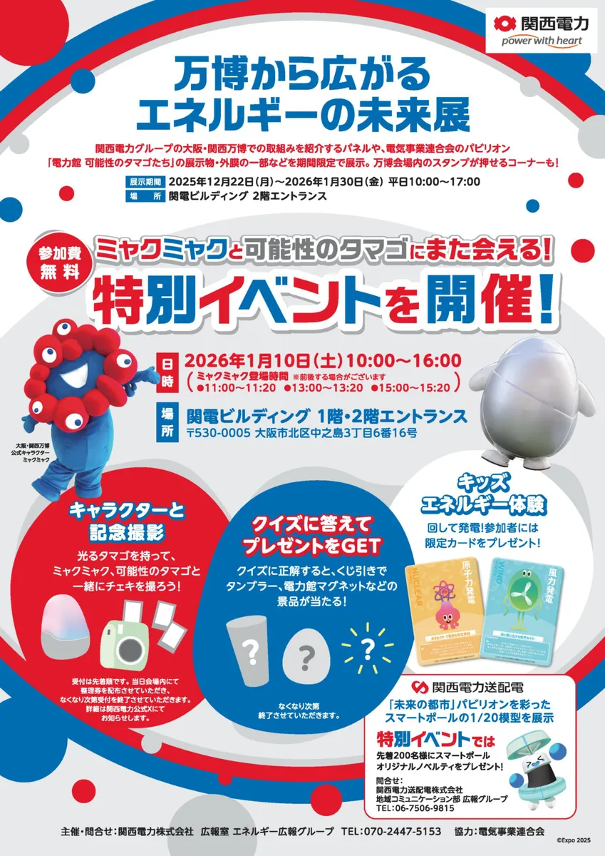 【2026年1月10日】ミャクミャクにまた会える!「万博から広がるエネルギーの未来展」