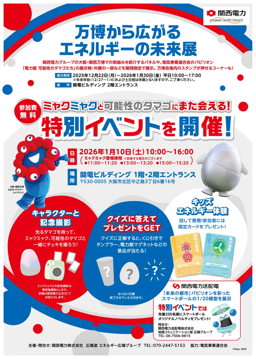 【2026年1月10日】ミャクミャクにまた会える!「万博から広がるエネルギーの未来展」
