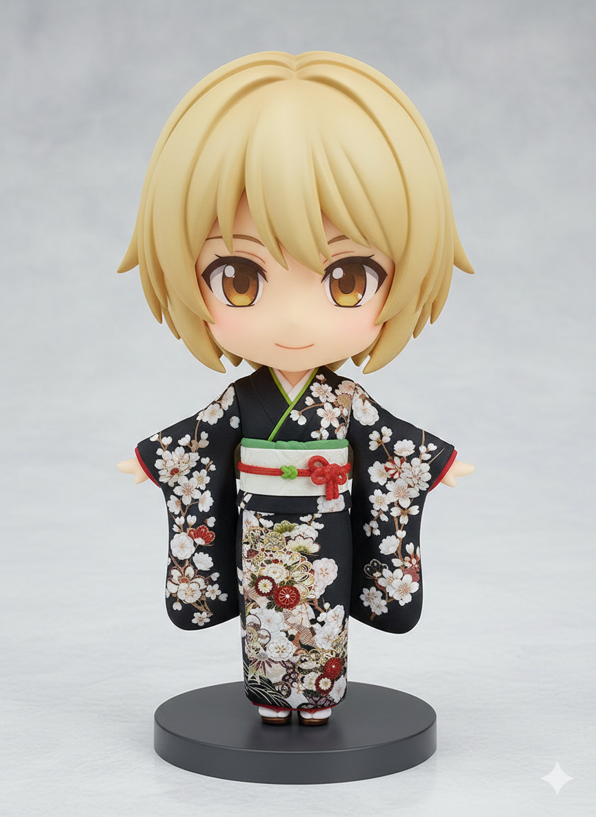 投稿を表示他のSNSで使っていますアイコンを、着物で背景を和風のフュギュアで作成できました〜。