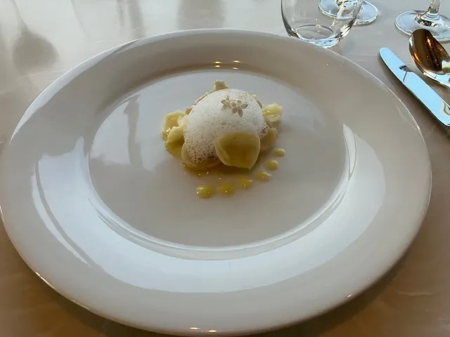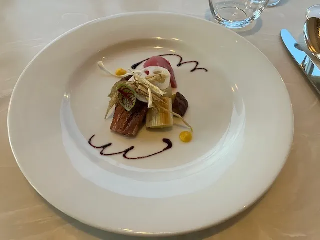 鯛の燻製とホタテ貝柱の炙り カリフラワーのピュレ
