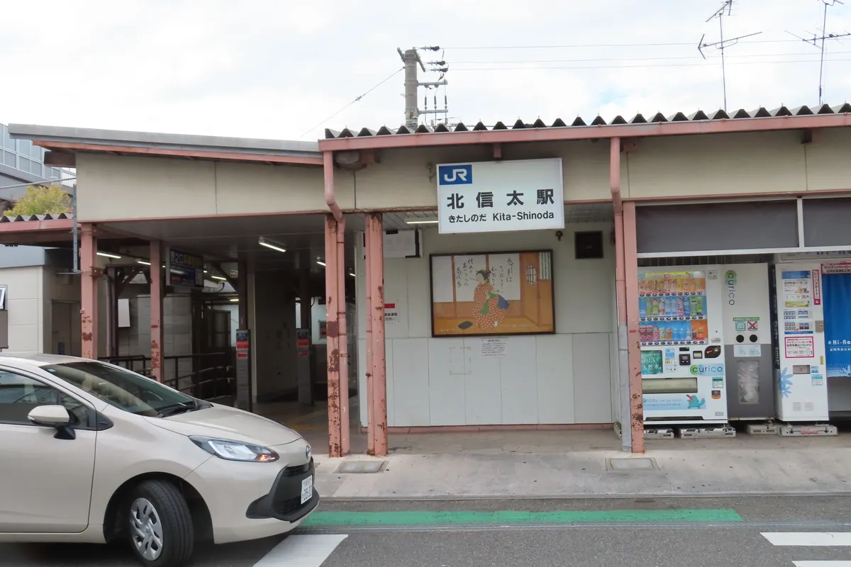 この日ゴールの北信太駅 駅前は商店街はシャッター街になっていた