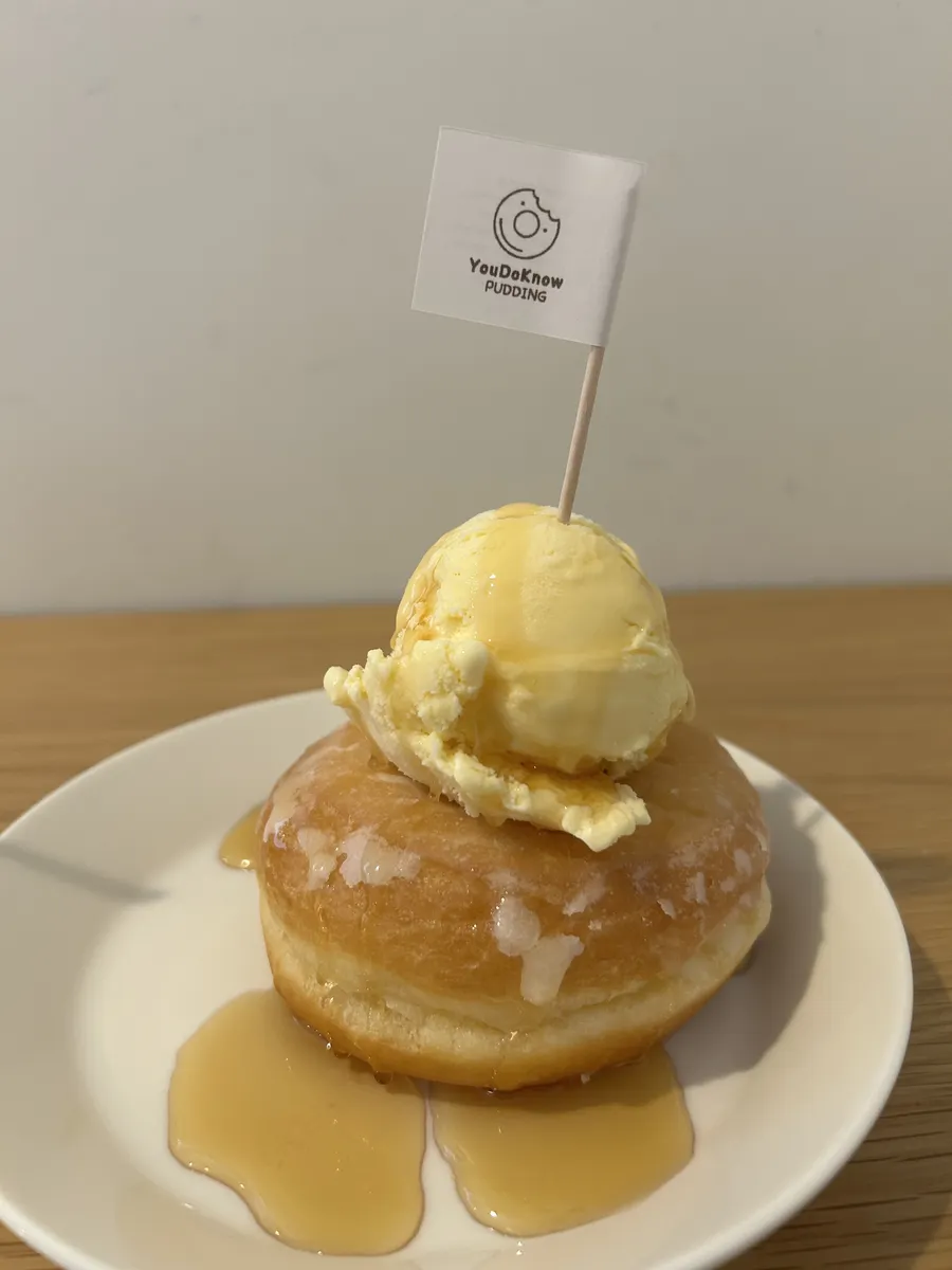 今回はまあまあ暑かったので、アイスのレギュラーコーヒーと、こちらの名物、アイスクリームのっけのドーナツをいただきました🍩☕️