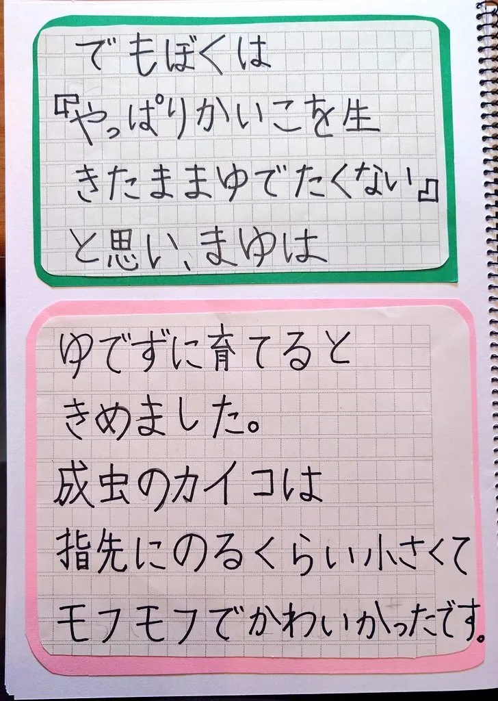 今年、『本当なら生きたまま繭を茹でられてしまう蚕ちゃんを殺さずに育てたい』という次男の希望ではじめて蚕を飼いました