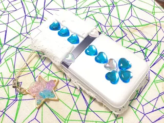 携帯デコったぜよ ハトプリのキュアマリンをイメージして青を基調にして作りましたこれ持って顔が不貞腐れてる人は自分です笑。