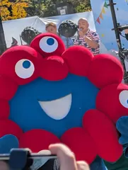 久々の動くミャクミャクに会いに、、 扇町公園でのよ〜いどんフェスへミャクミャクに会いに行ってきました☺️周りの皆さんミャクミャクグッズいっぱい付けてて、もはや万博のような熱気💪出てきたミャクミャクは変わらずかわいくて、いっぱい手を降ってくれたり、サービス精神旺盛でした☺️下に降りてきたので、動画にしようか静止画にしようかあたふたしてた