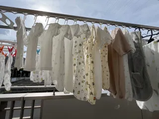世界一幸せな洗濯! 今日、少し離れて暮らす息子夫婦から「世界で一番幸せ洗濯」のタイトルでLINEでうれしい写真が送られてきた。12月に出産予定の子供のベビー服を下洗いした写真。カラッとした天気でベビーウェアも気持ちよく乾いたことだろう。元気に生まれてくることを願うばかり。