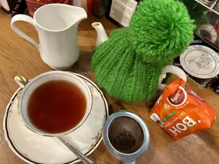 弁天町で夜紅茶 弁天町で紅茶。天満の茶摩さんや、西天満のミツバチ堂さんとともに頻繁に行く紅茶店、ティールームリーフさん。まだ蒸し暑いので、メインの紅茶はアイスロイヤルミルクティー。それに組み合わせるスイーツは栗のケーキ。まだ暑いけど、季節の進み具合を感じさせるこのケーキは、マスターによって生み出される逸品。決して派