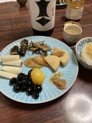 あけましておめでとうございます㊗️元旦の朝、嫁さんがおせちをお重に料理を詰めていく。彼女が起き出す前にブリの梅照り焼きを作り、お重に詰める紅白かまぼこなどの練り物を切り、飾りのキヌサヤやミツバを茹でておく。さらに雑煮の汁も味つける。10時前娘が来て、仏壇に手を合わせてから準備したおせち料理と酒で新年